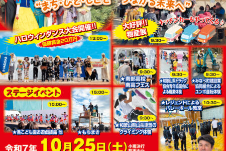 「まち・ひと・しごと つながる未来へ」をテーマに南部高校を会場とし、ハロウィンダンス大会、物産展、餅まきなど様々な催しを行います。